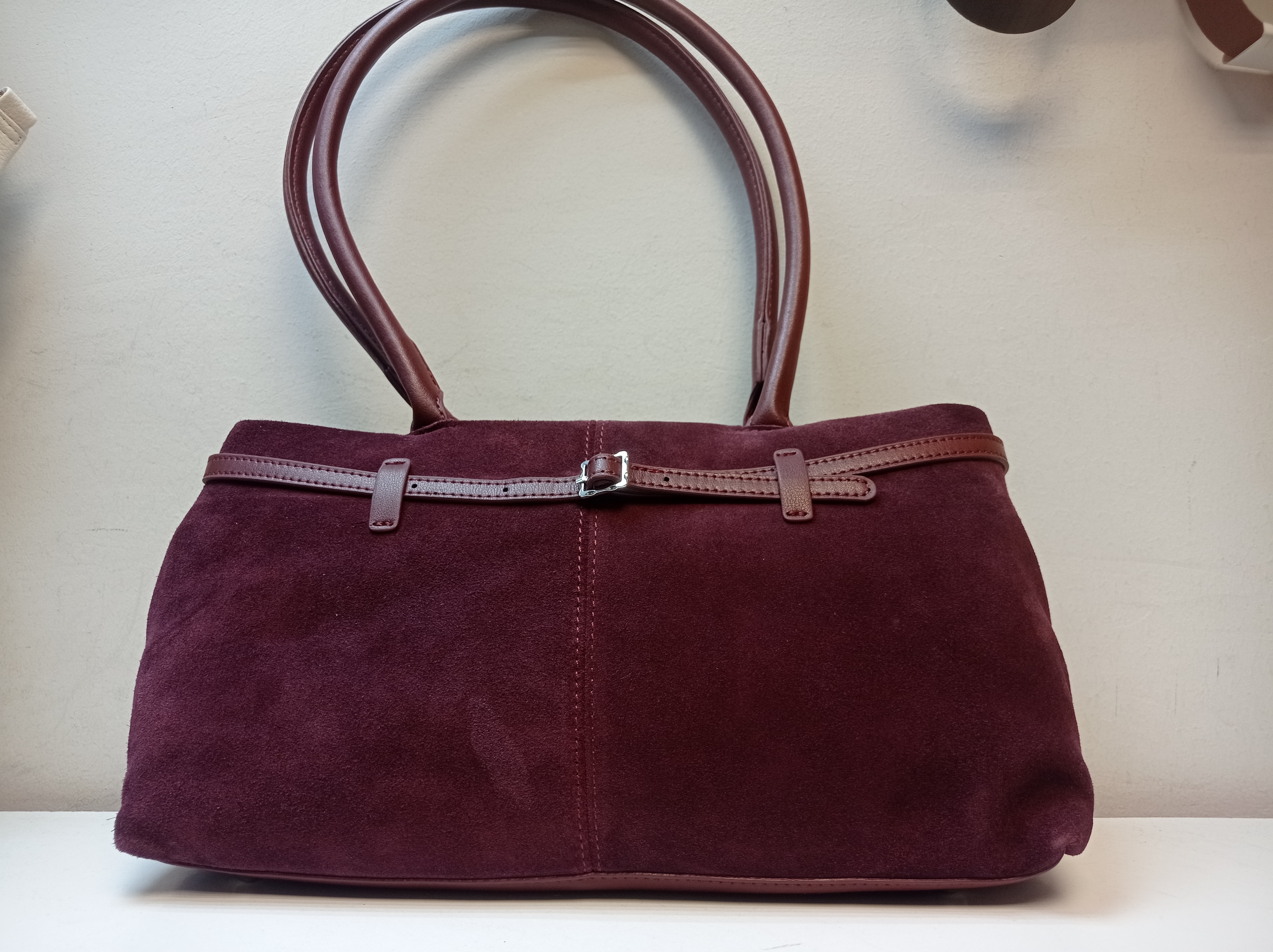 Бордовая замшевая сумка – идеальный выбор для подчеркивания вашего стиля! Подходит как повседневная модель благодаря удобству ношения и элегантному дизайну. Кожаные ручки обеспечивают комфорт при использовании, а стильный декоративный ремешок добавляет изюминку и подчеркивает индивидуальность сумки. Современный дизайн и высокое качество материалов создадут вам безупречный образ, который оценят окружающие.